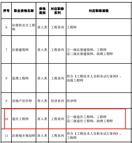 其中,取得一級造價工程師資格的人員,可聘任工程師職務(wù);取得二級造價工程師資格的人員,可聘任助理工程師職務(wù)。