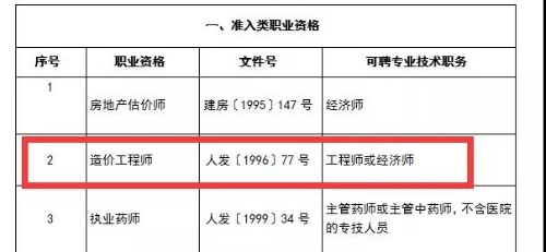 其中,造價工程師可聘任工程師或經(jīng)濟(jì)師職務(wù)。