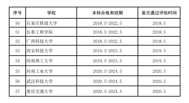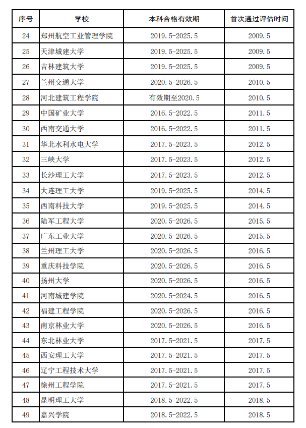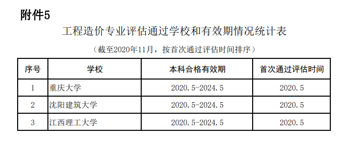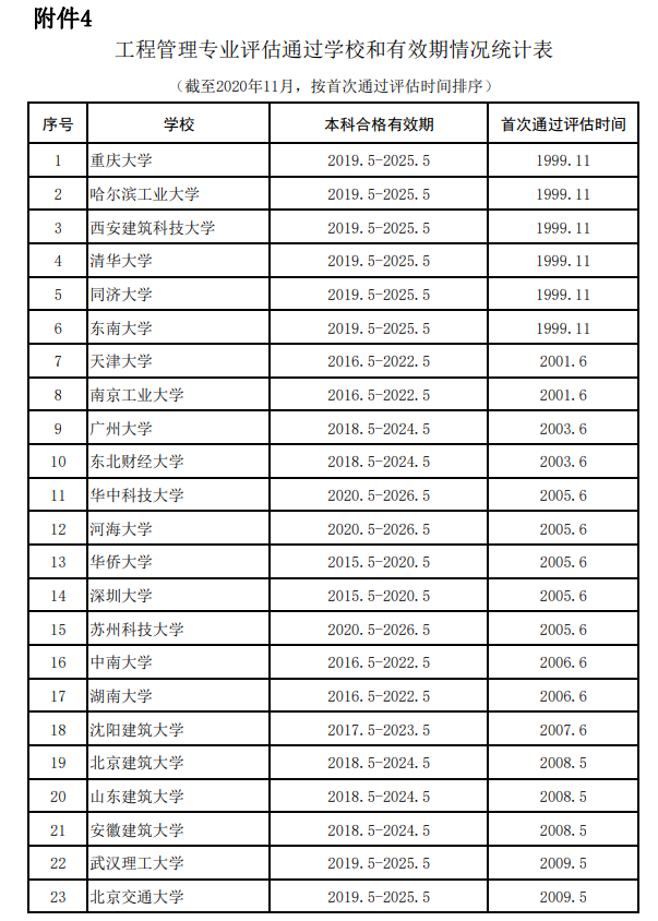 工程管理專業(yè)評估通過學校和有效期情況統(tǒng)計表