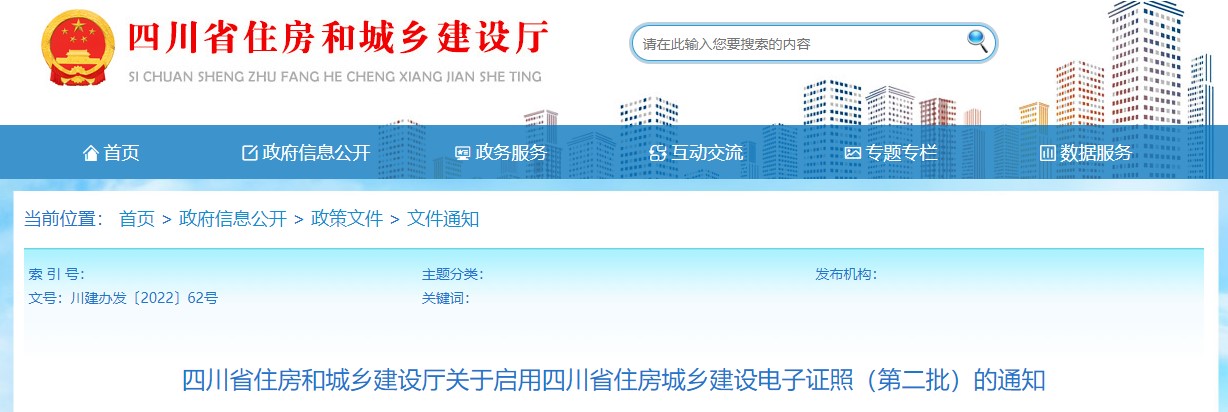 四川省住房和城鄉(xiāng)建設(shè)廳關(guān)于啟用四川省住房城鄉(xiāng)建設(shè)電子證照(第二批)的通知
