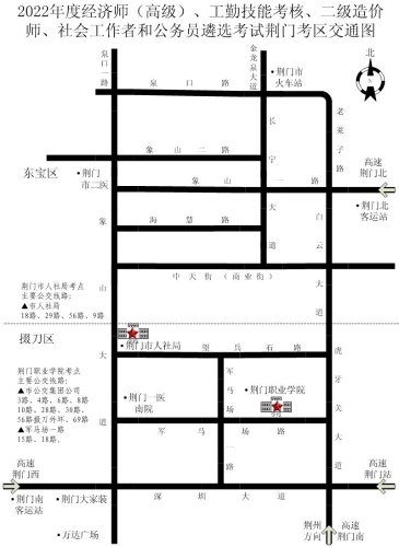 (二)荊門市人社局考點(diǎn)主要公交線路: