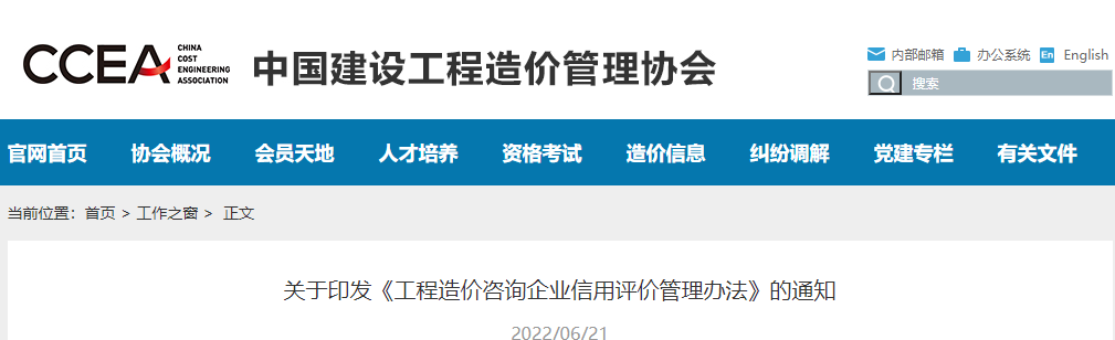 為適應(yīng)行業(yè)新發(fā)展形勢(shì),貫徹落實(shí)國(guó)務(wù)院、住房和城鄉(xiāng)建設(shè)部關(guān)于社會(huì)信用體系建設(shè)的工作部署,推進(jìn)工程造價(jià)咨詢行業(yè)信用體系建設(shè),更加科學(xué)和規(guī)范的開(kāi)展工程造價(jià)咨詢企業(yè)信用評(píng)價(jià)工作,規(guī)范工程造價(jià)咨詢企業(yè)從業(yè)行為,我協(xié)會(huì)對(duì)2019年發(fā)布《工程造價(jià)咨詢企業(yè)信用評(píng)價(jià)管理辦法》進(jìn)行了修訂,現(xiàn)將新修訂后的《工程造價(jià)咨詢企業(yè)信用評(píng)價(jià)管理辦法》印發(fā)給你們。