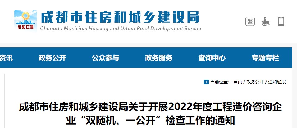 成都市住房和城鄉(xiāng)建設(shè)局關(guān)于開展2022年度工程造價咨詢企業(yè)“雙隨機(jī)、一公開”檢查工作的通知