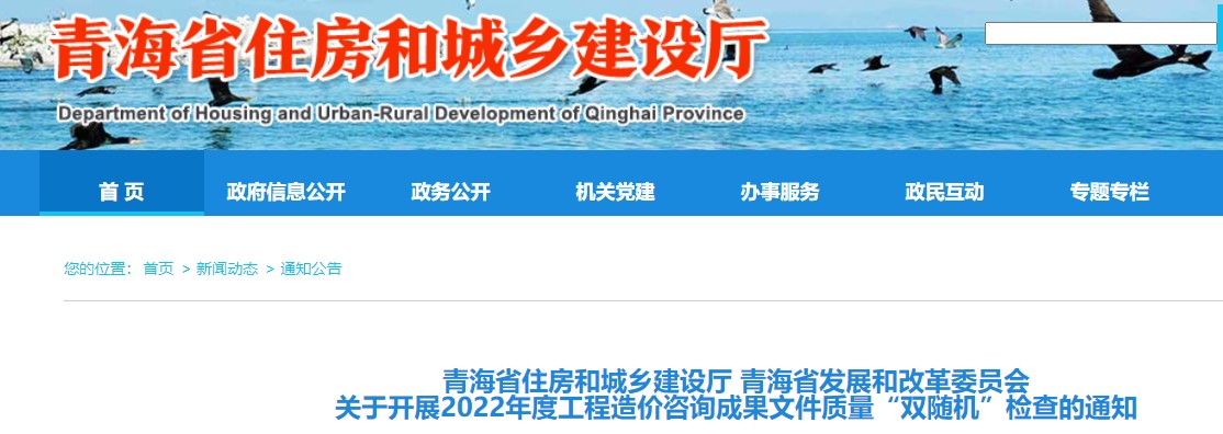 青海關(guān)于開展2022年度工程造價咨詢成果文件質(zhì)量“雙隨機”檢查通知