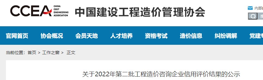 中國(guó)建設(shè)工程協(xié)會(huì)關(guān)于2022年第二批工程造價(jià)咨詢企業(yè)信用評(píng)價(jià)結(jié)果公示