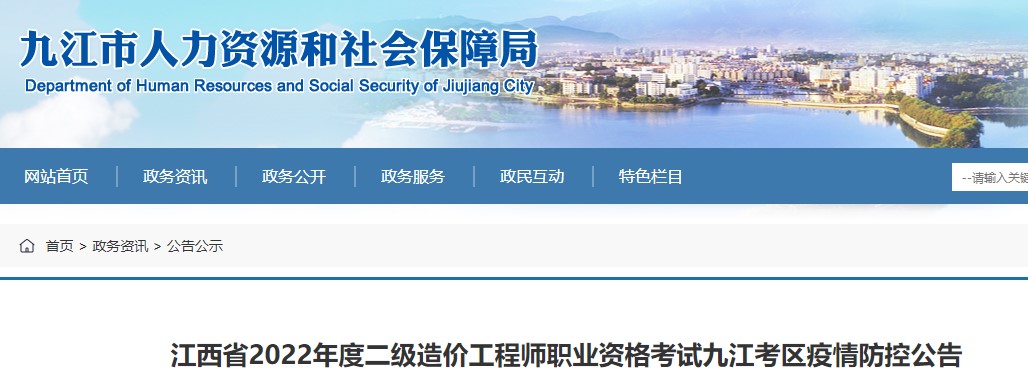 江西省2022年度二級(jí)造價(jià)工程師職業(yè)資格考試九江考區(qū)疫情防控公告