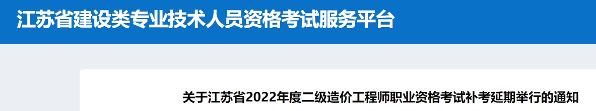 關于江蘇省2022年度二級造價工程師職業(yè)資格考試補考延期舉行的通知