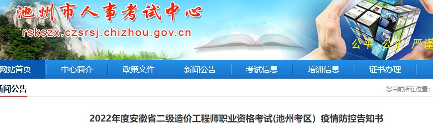 ?2022年度安徽池州考區(qū)二級(jí)造價(jià)工程師職業(yè)資格考試疫情防控告知書(shū)