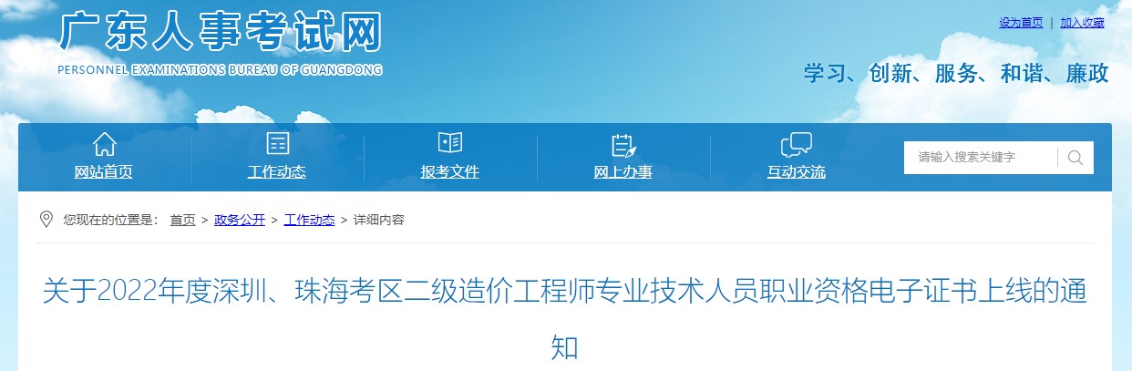 ?關(guān)于2022年度深圳、珠海考區(qū)二級(jí)造價(jià)師職業(yè)資格電子證書(shū)上線(xiàn)的通知