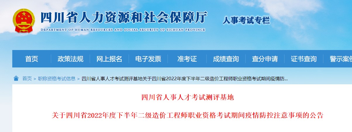 關(guān)于四川2022年度下半年二級造價工程師考試期間疫情防控注意事項(xiàng)公告