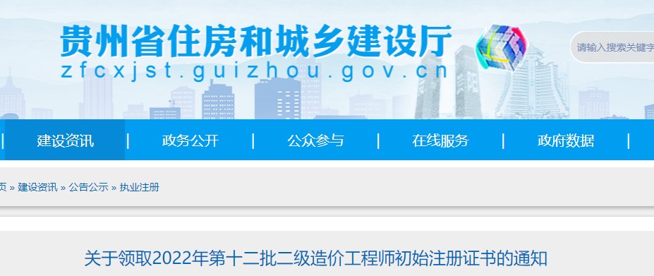 貴州省?關(guān)于領(lǐng)取2022年第十二批二級造價工程師初始注冊證書的通知