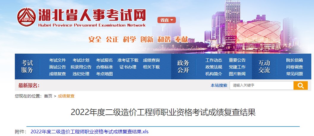 湖北省2022年度二級(jí)造價(jià)師職業(yè)資格考試成績(jī)復(fù)查結(jié)果的通知