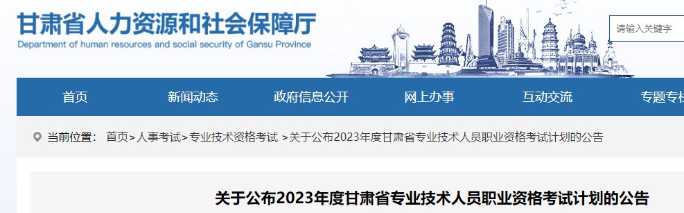關(guān)于公布2023年度甘肅省專(zhuān)業(yè)技術(shù)人員職業(yè)資格考試計(jì)劃的公告