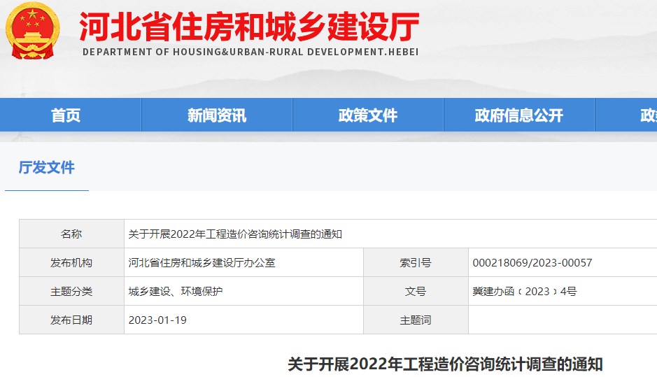 河北省關(guān)于開展2022年工程造價(jià)咨詢統(tǒng)計(jì)調(diào)查的通知