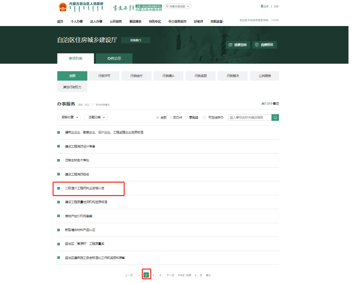(1)二級造價(jià)師本人登錄內(nèi)蒙古政務(wù)服務(wù)網(wǎng)