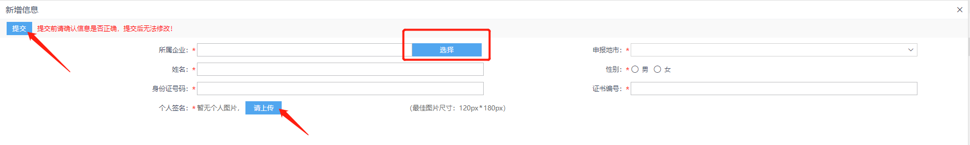 請注意:1.為保證證書正常使用,個人簽名圖片請清晰上傳!