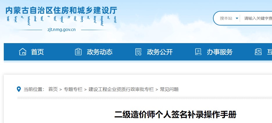 內(nèi)蒙古住建廳發(fā)布關(guān)于二級造價(jià)工程師個人簽名補(bǔ)錄操作手冊