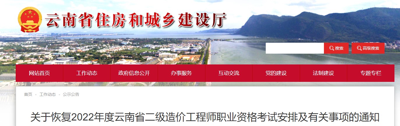云南省恢復2022年度二級造價師考試時間:2023年2月25日