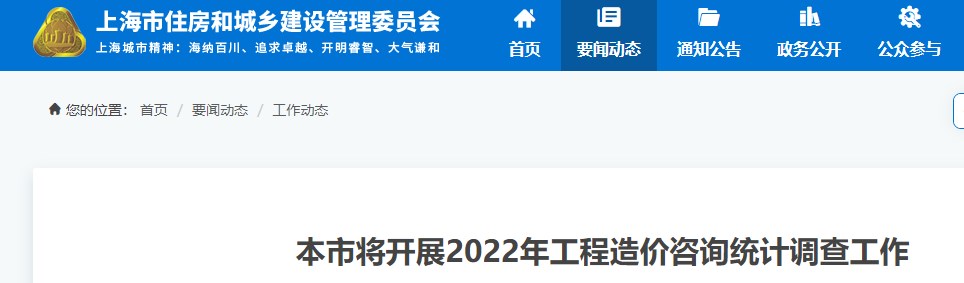 上海市關(guān)于開展2022年工程造價咨詢統(tǒng)計調(diào)查工作的通知