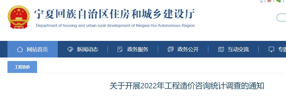 寧夏自治區(qū)關(guān)于開展2022年工程造價(jià)咨詢統(tǒng)計(jì)調(diào)查的通知