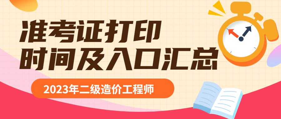 全國(guó)2023年二級(jí)造價(jià)師考試準(zhǔn)考證打印時(shí)間及入口匯總