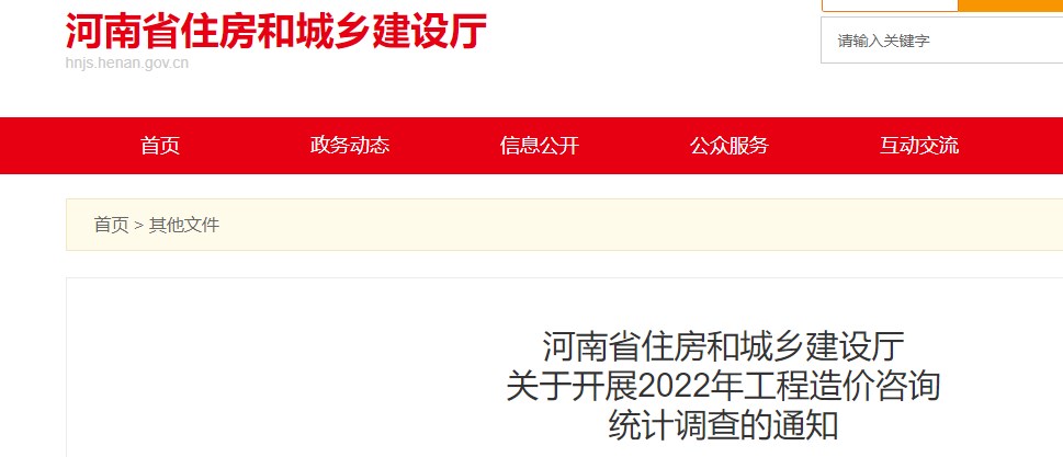 河南住建廳關(guān)于開展2022年工程造價(jià)咨詢統(tǒng)計(jì)調(diào)查的通知