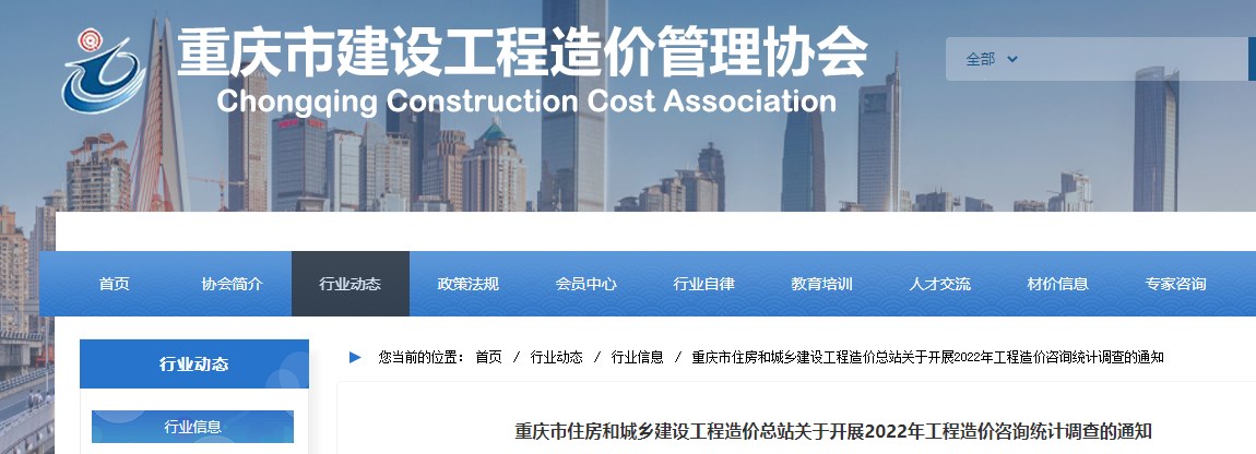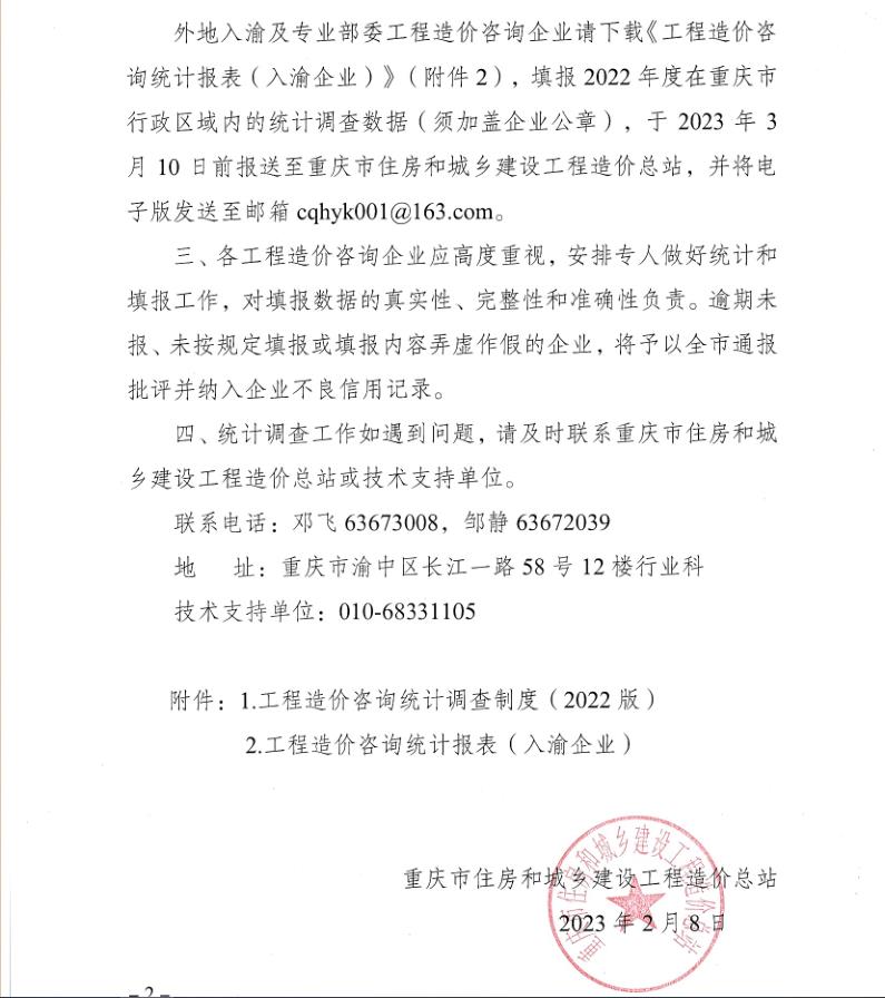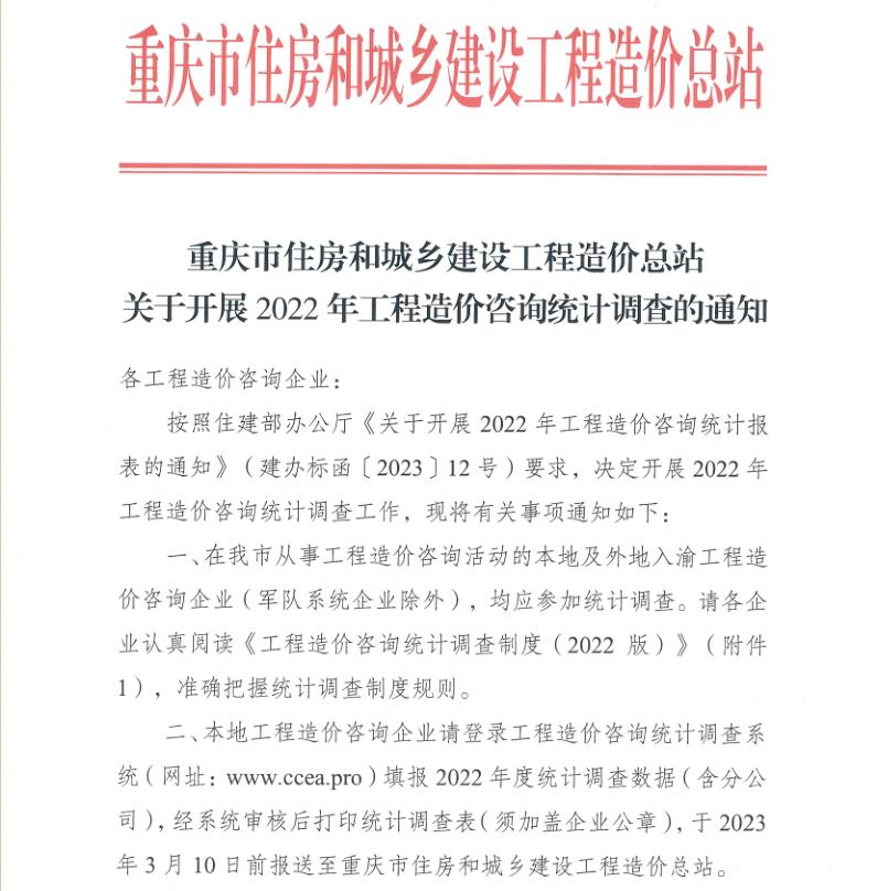重慶市關于開展2022年工程造價咨詢統(tǒng)計調查的通知