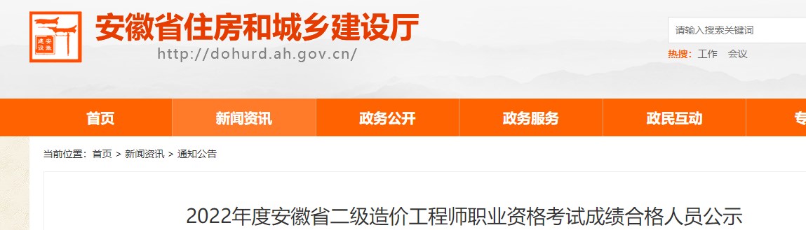 安徽省2022年二級(jí)造價(jià)工程師職業(yè)資格考試成績(jī)合格人員公示