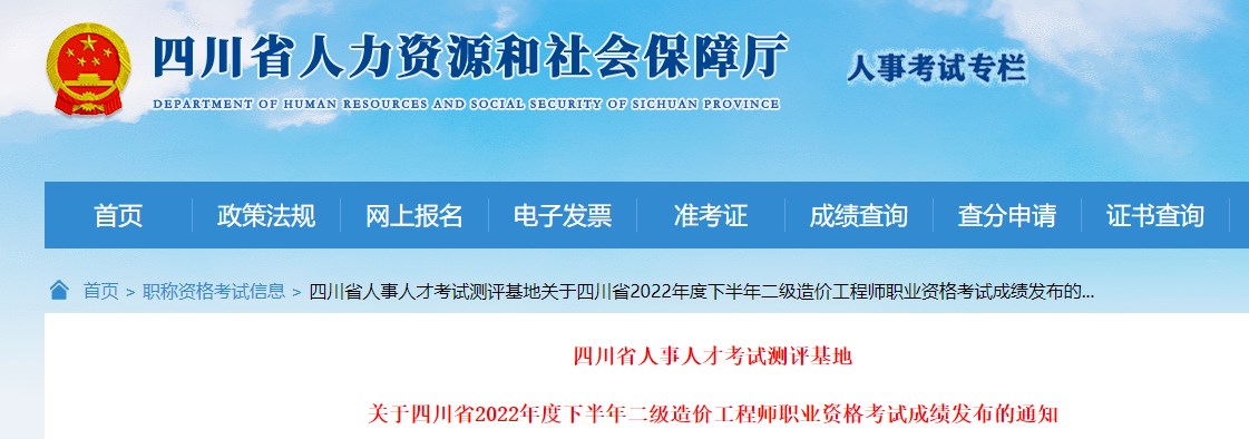 關于四川省2022年度下半年二級造價工程師職業(yè)資格考試成績發(fā)布的通知