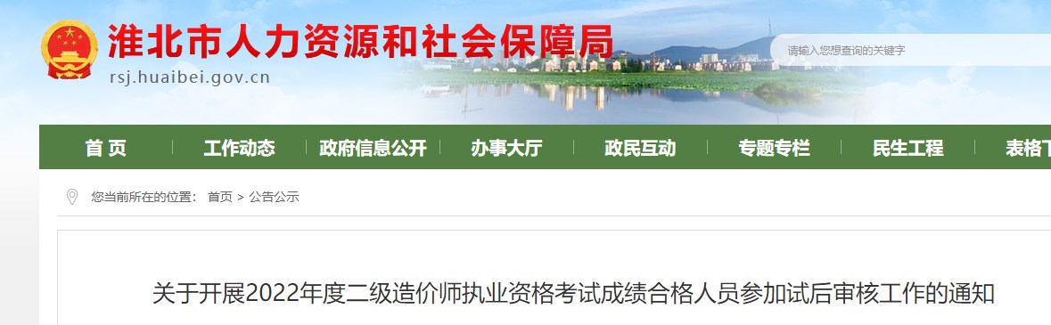 安徽淮北關(guān)于2022年度二級造價(jià)師考試成績合格人員試后審核工作的通知