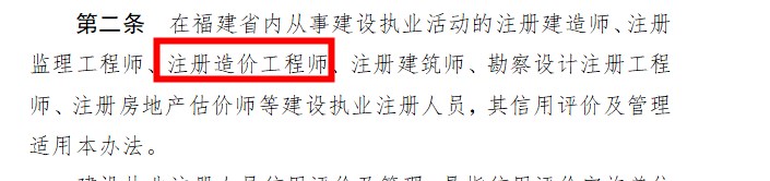 關(guān)于印發(fā)《福建省建設(shè)執(zhí)業(yè)注冊人員信用評價辦法》的通知,涉及二級造價師