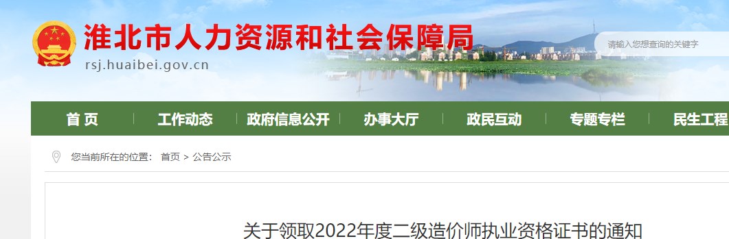 安徽淮北關(guān)于領(lǐng)取2022年度二級(jí)造價(jià)師執(zhí)業(yè)資格證書(shū)的通知