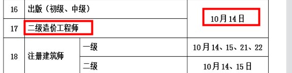 海南省2023年二級造價師考試時間確定為10月14日