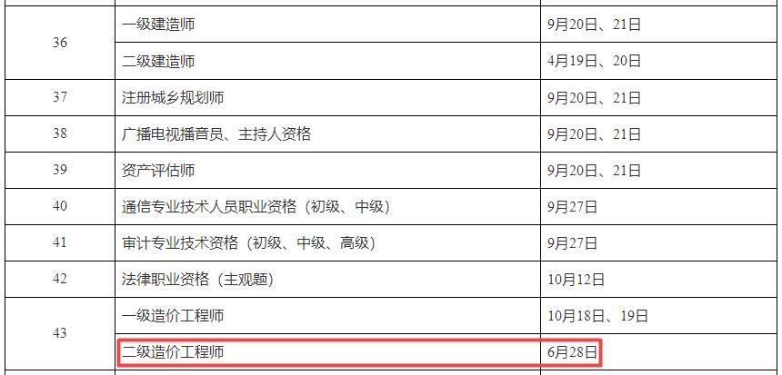 2025年貴州二級造價工程師考試時間6月28日