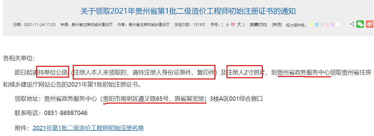 關(guān)于領(lǐng)取2021年貴州省第1批二級(jí)造價(jià)工程師初始注冊(cè)證書的通知