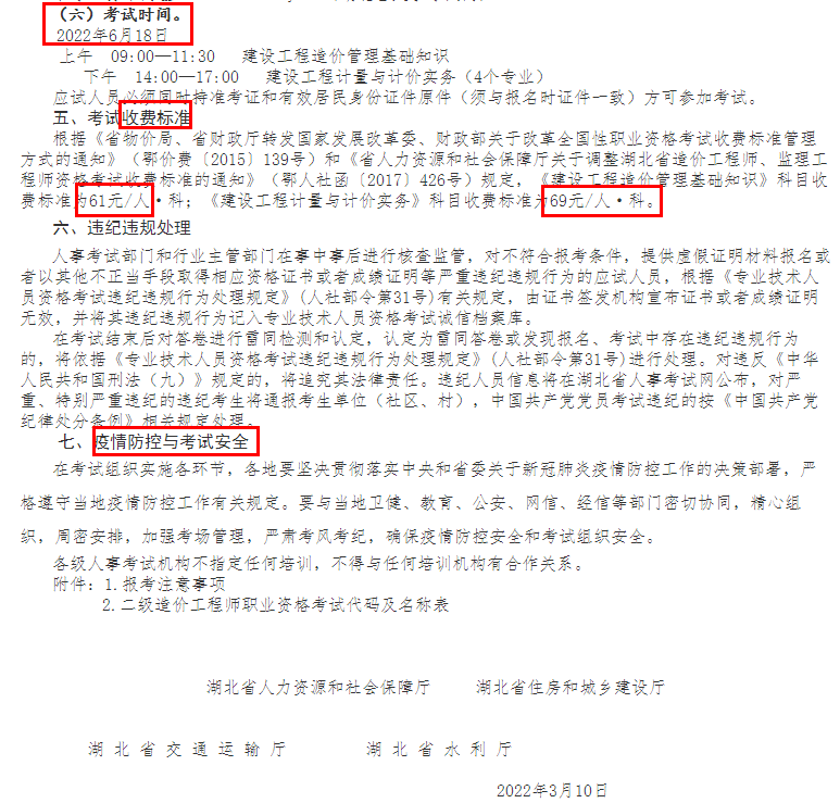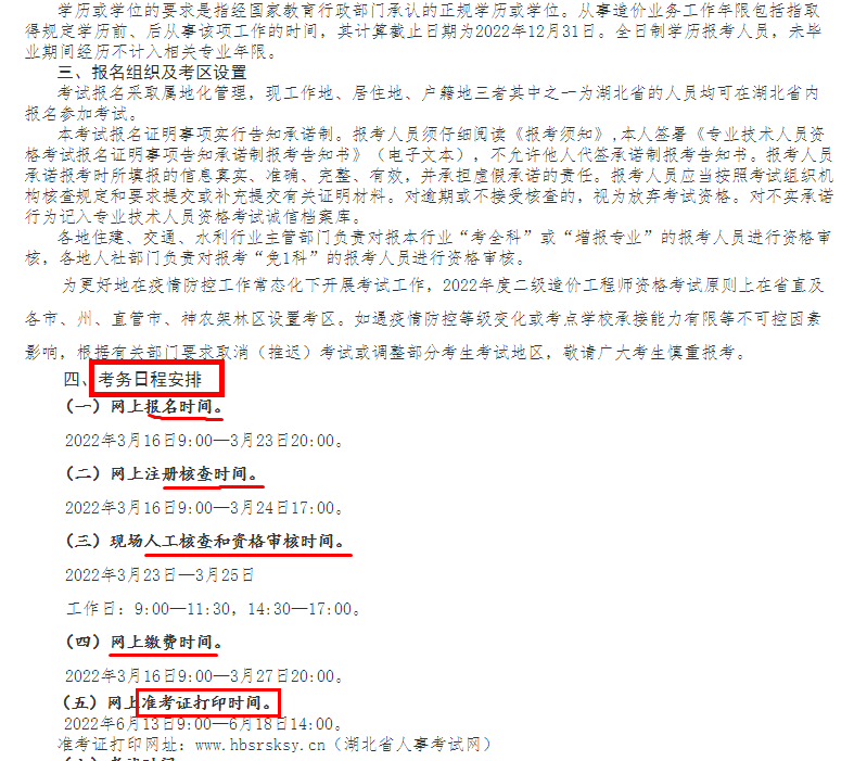 湖北2022年二級造價工程師考試考務(wù)工作通知