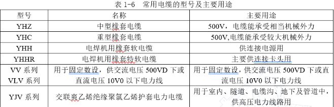 【解析】本題考查的是常用電氣材料。YHC主要用于500V,電纜能承受較大機(jī)械外力。見表1-6常用電纜的型號及主要用途。