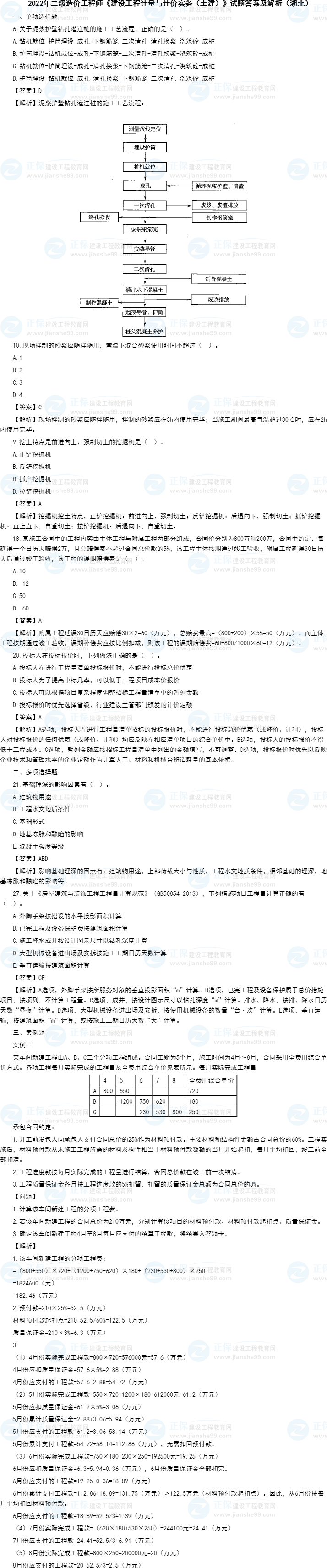 湖北2022年二級造價工程師《計量與計價實務(wù)(土建)》試題答案及解析