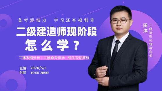 2020年二級(jí)建造師考試推遲,考試時(shí)間暫未確定。目前僅陜西、江西、江蘇完成了網(wǎng)上報(bào)名,其他省市二建報(bào)名時(shí)間暫未公布。二級(jí)建造師考試延期,備考戰(zhàn)線拉長(zhǎng),對(duì)于2020二建考生來說,既是機(jī)遇又是挑戰(zhàn)。備考時(shí)間太長(zhǎng),堅(jiān)持不下去怎么辦?現(xiàn)在開始備考還來得及嗎?第一次報(bào)名怎么選專業(yè)?別慌,建設(shè)工程教育網(wǎng)特邀網(wǎng)校老師田洋老師為大家進(jìn)行直播講解。有什么問題,直接問田洋老師吧!