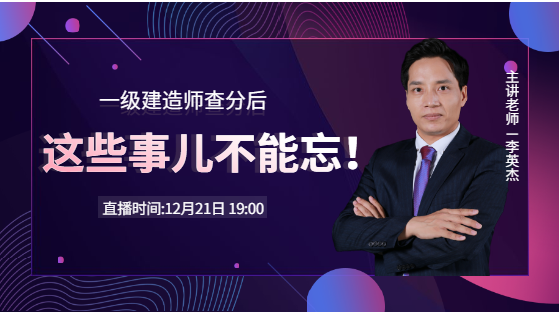 2020一級(jí)建造師成績(jī)公布啦!同學(xué)們忙于查分之余千萬(wàn)不能忽略查分后的這些事情。12月21日晚19:00,李英杰老師為同學(xué)們細(xì)數(shù)查分后應(yīng)注意的事項(xiàng),一定要記得!