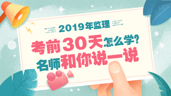距離2019年監(jiān)理工程師考試還剩1個(gè)月的時(shí)間,考生們你們準(zhǔn)備好了嗎?30天應(yīng)該怎樣學(xué)習(xí)?30天如何進(jìn)行合理分配?必做題型及知識(shí)點(diǎn)是否都已掌握?想要在30天內(nèi)突破重重障礙,取得最后勝利,4月18日監(jiān)理直播不能錯(cuò)過!建設(shè)工程教育網(wǎng)老師李娜老師帶領(lǐng)考生們360°深度解析30天備考技巧,解決考生們備考中的重重困惑。