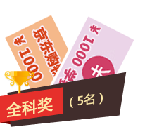 全科獎(jiǎng)(5名)獎(jiǎng)勵(lì):1000元京東購(gòu)物卡+1000元學(xué)費(fèi);