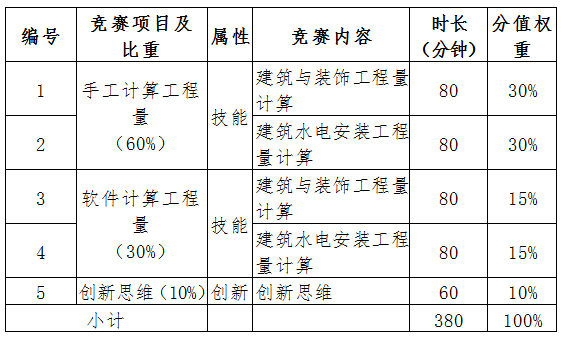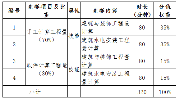 第一部分是手工計(jì)算工程量競(jìng)賽,包括2個(gè)賽項(xiàng):手工計(jì)算房屋建筑與裝飾工程量賽項(xiàng)、手工計(jì)算建筑水電安裝工程量賽項(xiàng);