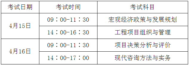 2017年度咨詢工程師(投資)職業(yè)資格考試時間及科目具體安排如下: