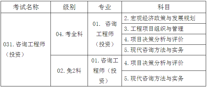 (二)凡符合以上規(guī)定并具備下列一項條件者,可免試《宏觀經(jīng)濟政策與發(fā)展規(guī)劃》《工程項目組織與管理》科目,只參加《項目決策分析與評價》和《現(xiàn)代咨詢方法與實務(wù)》2個科目的考試。