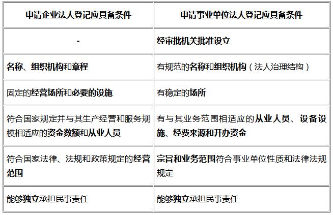 申請企業(yè)法人登記和事業(yè)單位法人登記,分別應(yīng)具備的條件