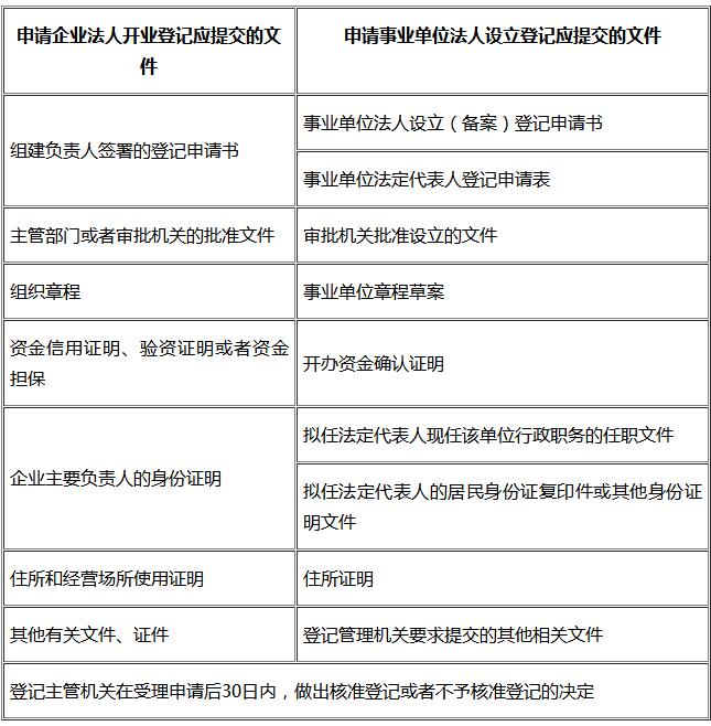 申請企業(yè)法人開業(yè)登記和事業(yè)單位法人設(shè)立登記,分別應(yīng)提交的文件
