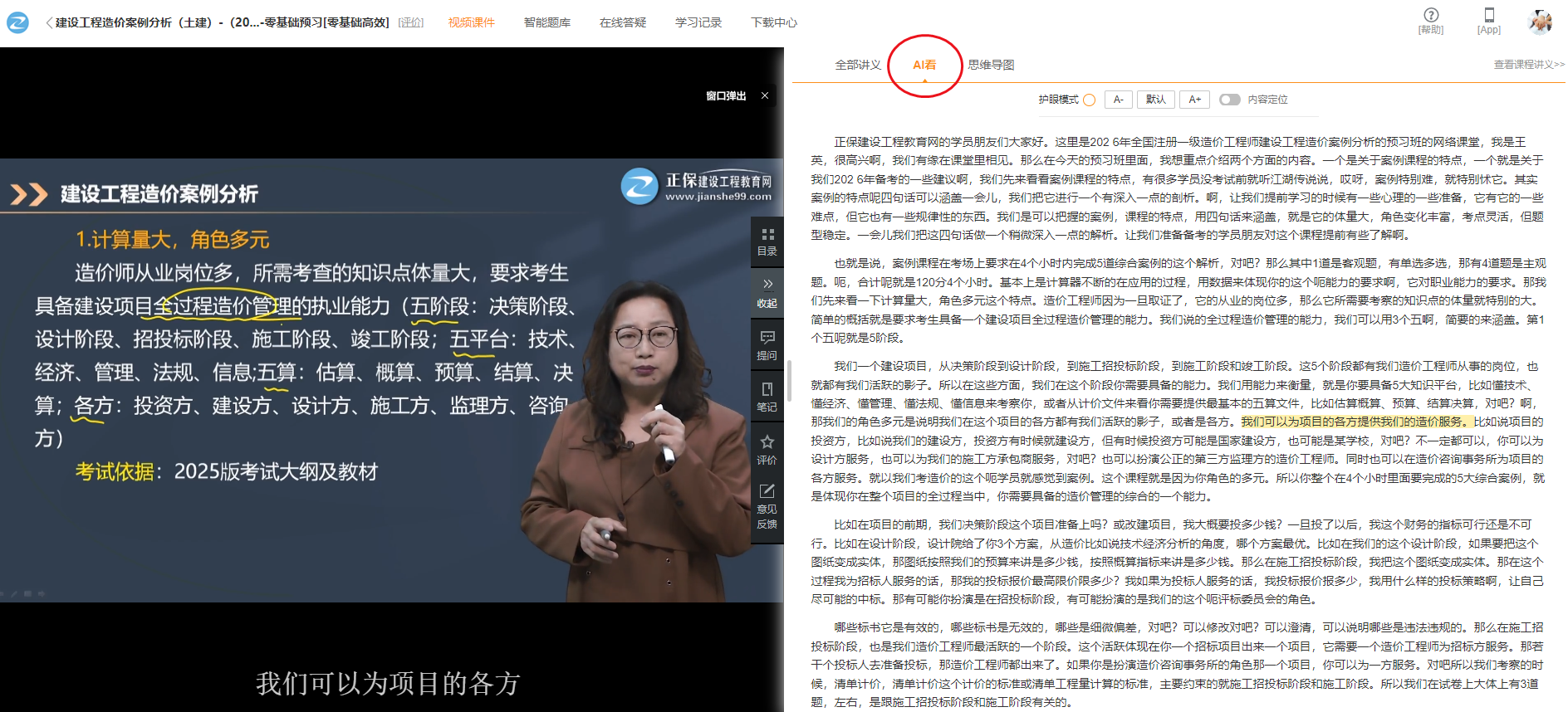【AI看】可將視頻講解內(nèi)容自動(dòng)轉(zhuǎn)換為文字講稿,方便您系統(tǒng)整理學(xué)習(xí)內(nèi)容。雙擊文本內(nèi)容,視頻立即跳轉(zhuǎn)到對(duì)應(yīng)講解位置,讓復(fù)習(xí)和查找知識(shí)點(diǎn)變得快速又輕松(僅支持錄播課程)。