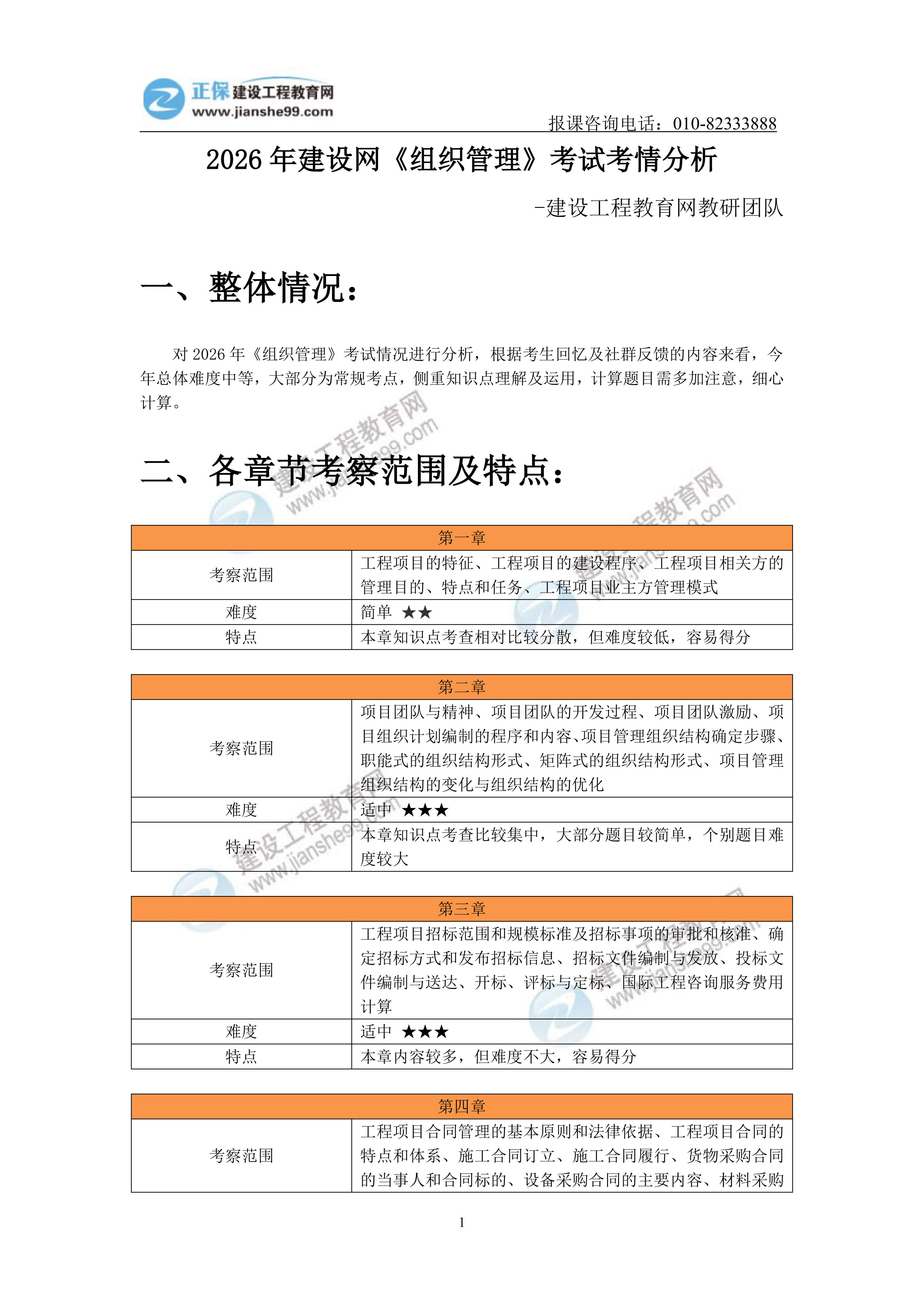 2026 年建設(shè)網(wǎng)《組織管理》考試考情分析