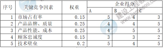 根據(jù)表2競爭態(tài)勢矩陣,計算各企業(yè)的加權(quán)強(qiáng)勢得分,并說明與B、C企業(yè)相比,A企業(yè)是否具有競爭優(yōu)勢。